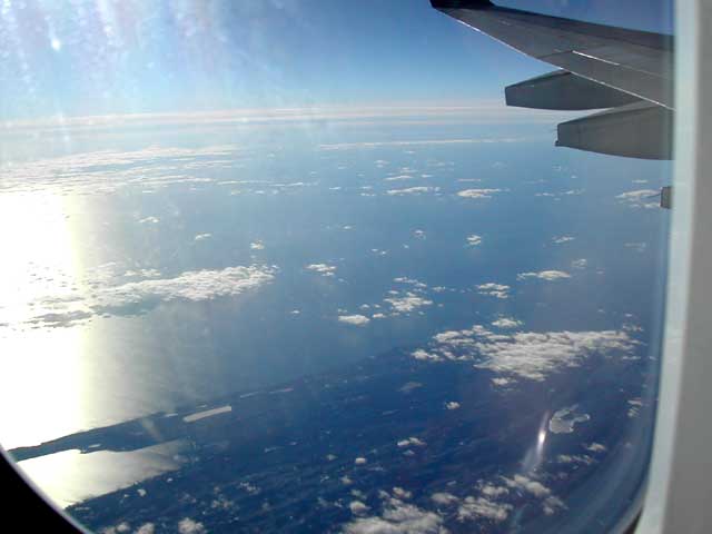 Our departure went pretty much without a hitch. Very little to see but clouds until over Lake Superior. However, it cleared up long enough that I managed to locate us. That land mass there? That's the "eye" of Lake Superior.