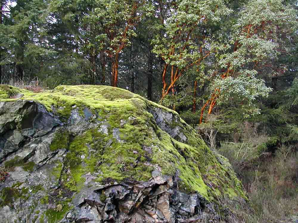 One of the most remarkable and sweeping differences we notice here is that moisture is in abundance. The resource that plants are limited by is sunlight. So anywhere there is sun, you get verdant growth. Moss is on everything.