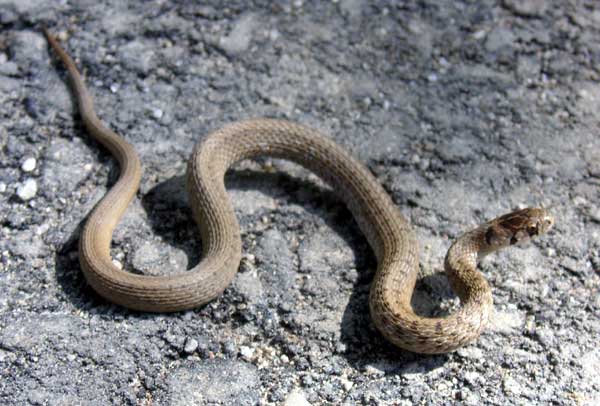 This little tyke, sunning himself on the path, is scarcely 6 inches long.