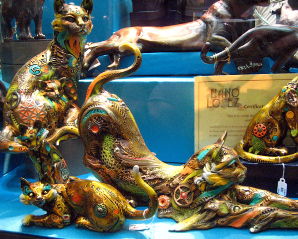Some sculptures in a window on a New York street