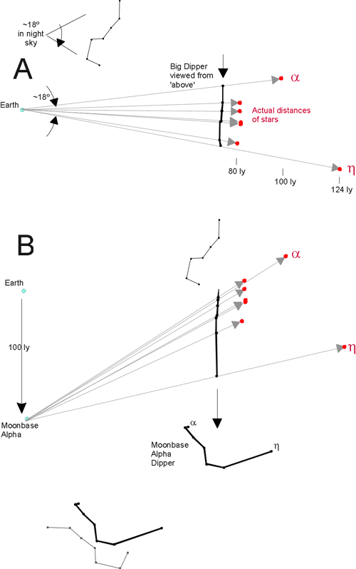 What would the Big Dipper look like from "Moon Base Alpha" 100 light years away?
