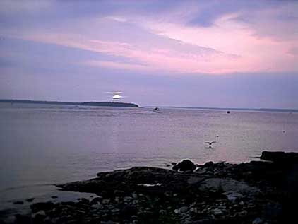 I was buddied up with a girl named Cam, (five foot tall Ellen Degeneres). We got suited up during the trip over to the first dive - The Caves. We moored off these cliffs that were 30 feet straight up, and dove into 20 feet of clear water. We tooled around in the rocks for a while, the bottom was very different than my other dives - the boulders were so big I could swim between them. Then Cam took me into the cliff face, through a tunnel maybe five feet high and ten feet wide. Just as the light behind us faded out, a deep blue glow appeared in front of us, and we popped up into a grotto inland, where hikers were walking by, and swimmers were swimming. Out again through another cave, and then I insisted my buddy take me as deeper. We followed the bottom away from the cliffs, and before I knew it I was at 50 feet. I would never have known it if I hadn't checked my gauge. All the changes take place in the first 20 feet, after that, not much different.