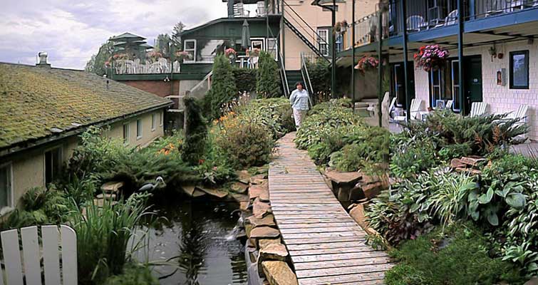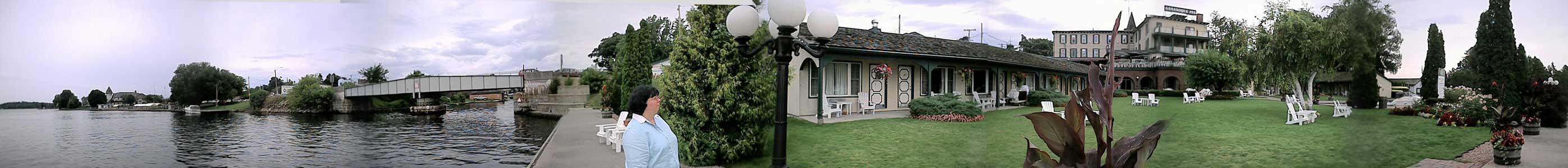 Our first stop: Gananoque. All they have left was a room with a private deck overlooking the grounds and waterfront. | |